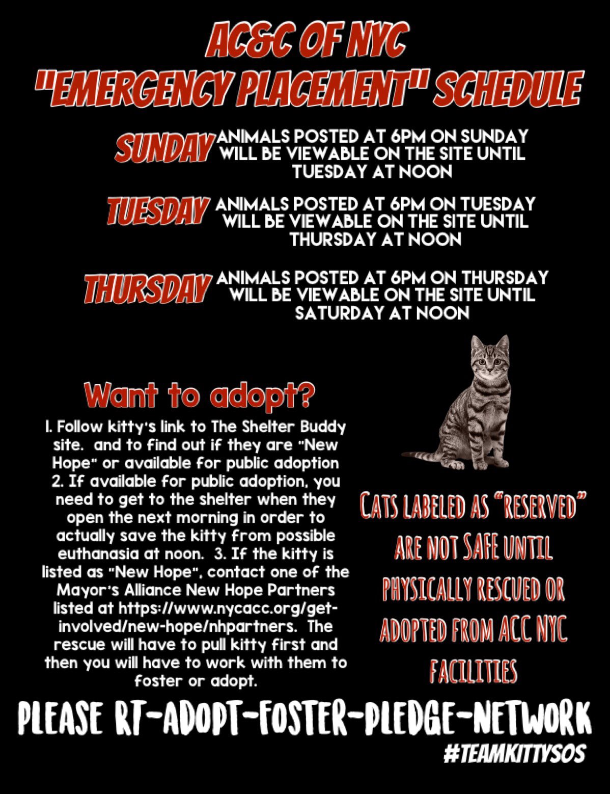 Nik Marley Cat On Twitter Urgent Nyc Cats The Ac C Of Nyc Has Resumed Listing Animals They Are Now Calling It Emergency Placement But Are Still Giving Cats And Dogs A